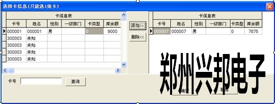 b 在左邊的卡信息表中選擇掛失的卡號(hào),單擊[添加]按鈕添加到右邊的卡信息表中。