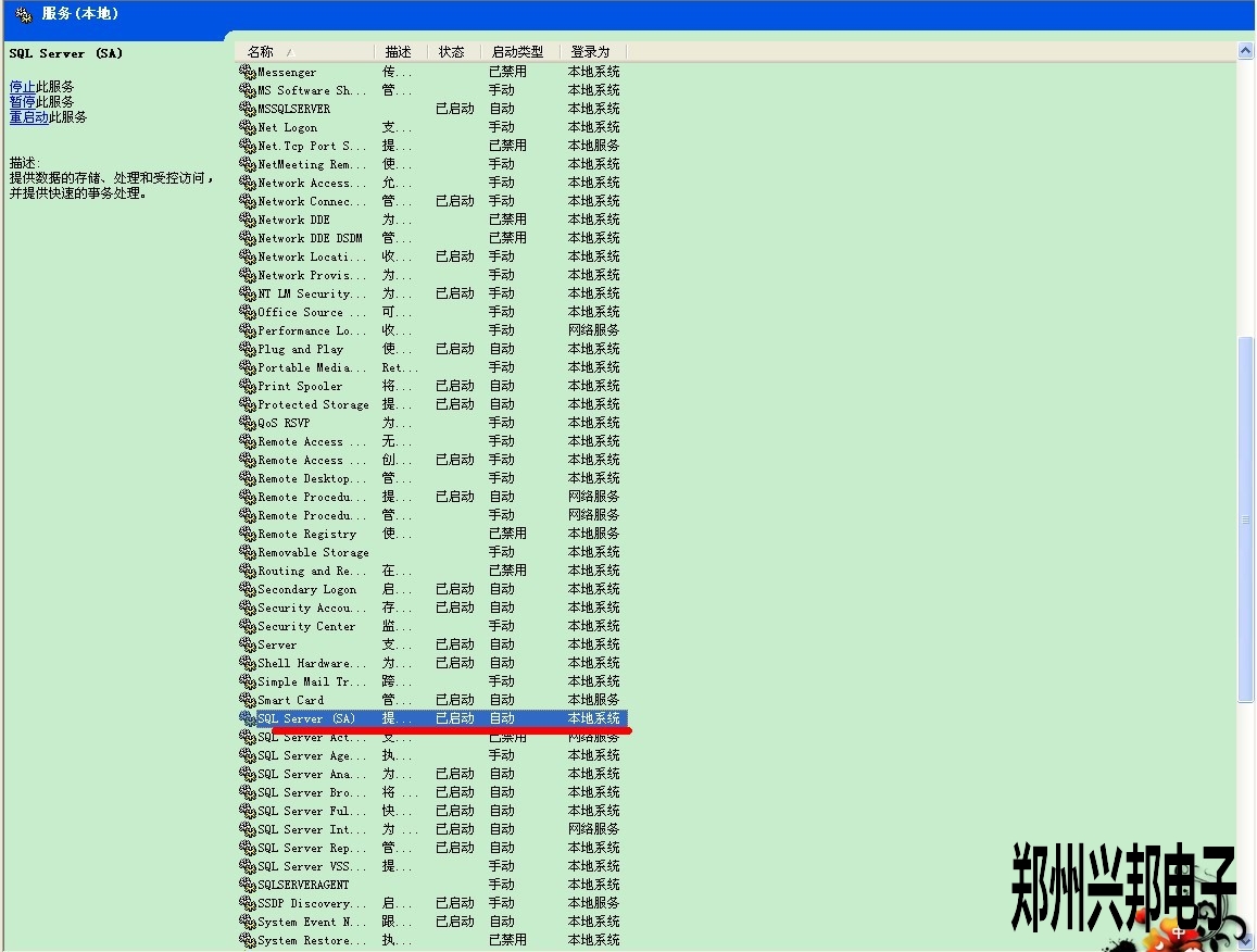 2. 控制面板-->工具管理-->服務,找到SQL Server啟動一下就OK了,如下圖所示
