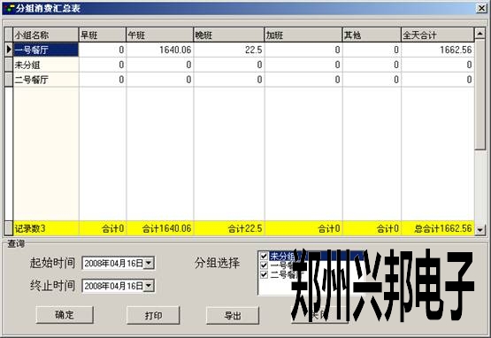 根據(jù)時間查詢出每組機(jī)器在每個時間段和所有時間段的消費(fèi)匯總情況,此表一般在給餐廳結(jié)帳時使用。