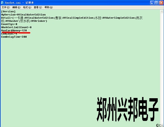 電腦桌面上找到485售飯機(jī)軟件圖標(biāo),然后光標(biāo)停在此軟件圖標(biāo)上右擊--屬性--查找根目錄,點(diǎn)開后打開軟件文件夾,也就是找到帶有軟件圖標(biāo)的文件夾,然后找到SYSSET.INI此文件,雙擊打開,把MAXCARDMONEY=XX,更改成自己所需要的即可,如下圖:有一卡通,售飯,水控,洗衣機(jī),飲水機(jī)等相關(guān)的中文數(shù)字,現(xiàn)在只需要把maxcardmoney=120,此時(shí)卡上總額最多只能存款為120,超過(guò)此金額就無(wú)法存款。