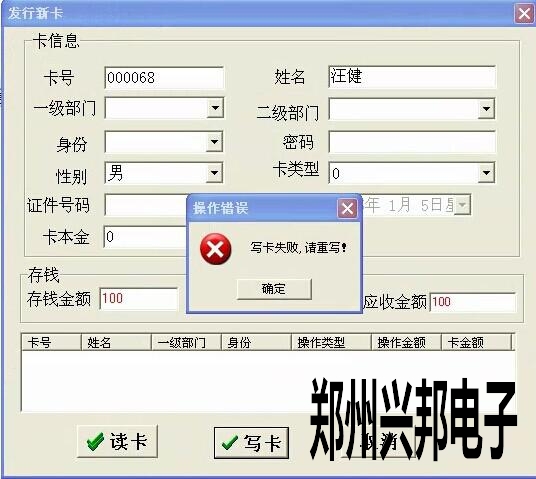 問題描述:客戶用的485食堂售飯機(jī)軟件,軟件可以正常打開,正常讀卡,客戶卡也能正常使用,發(fā)行新卡,存款時(shí)讀卡的時(shí)候是正常的,但是在寫卡的時(shí)候一直提示寫卡失敗,請(qǐng)重寫!