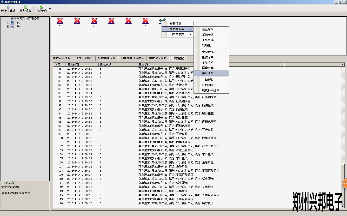 2.菜單添加完成后,需要將菜單通過下載參數(shù)的方法下載到消費(fèi)機(jī)中,下載時(shí)需要將機(jī)器和軟件連通,下載方法如下圖所示: