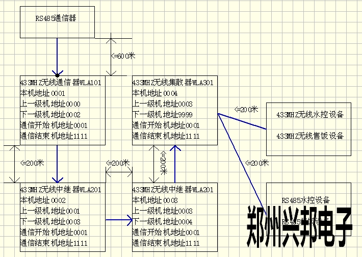 2、一個(gè)433MHZ無線通信器(WLA001)的無線覆蓋范圍為直經(jīng)400米(空曠地區(qū));只要在收發(fā)的范圍內(nèi),可連接的終端設(shè)備的臺(tái)數(shù)理論上沒有限制;地址號(hào)9998、9999,終端設(shè)備不可用,系統(tǒng)使用;