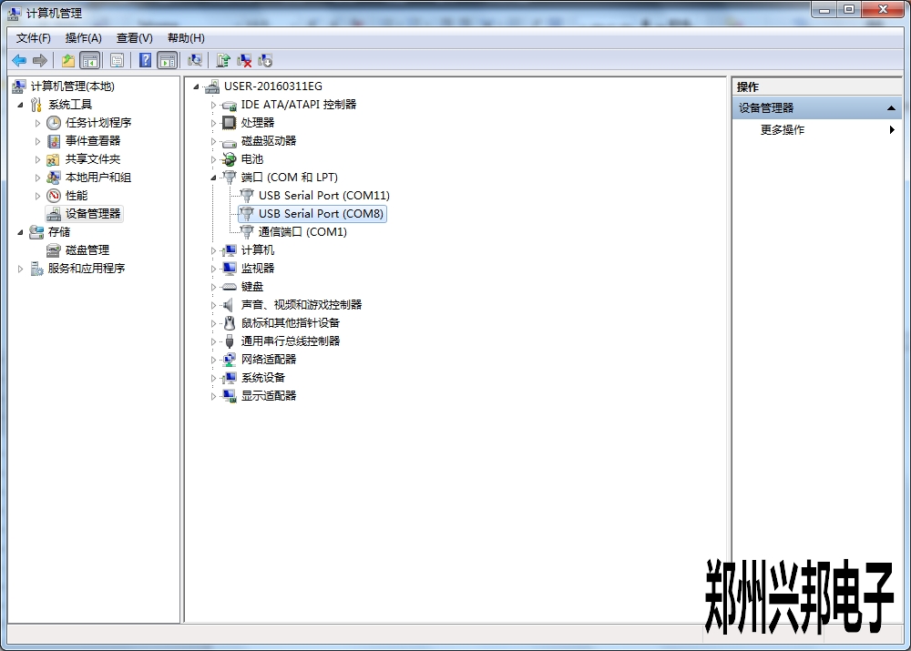 單擊計算機—單擊右鍵—管理—設(shè)備管理—端口。找到所用usb線端口。如下圖: