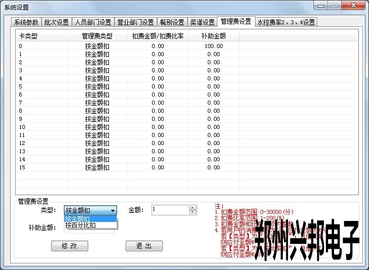 如上圖所示,可以根據(jù)卡類型設(shè)置不同的優(yōu)惠比例,比例的范圍是1-200%,如果是打九折,百分比設(shè)置為90%就可以了,如果是打八折,百分比設(shè)置為80%就可以了。