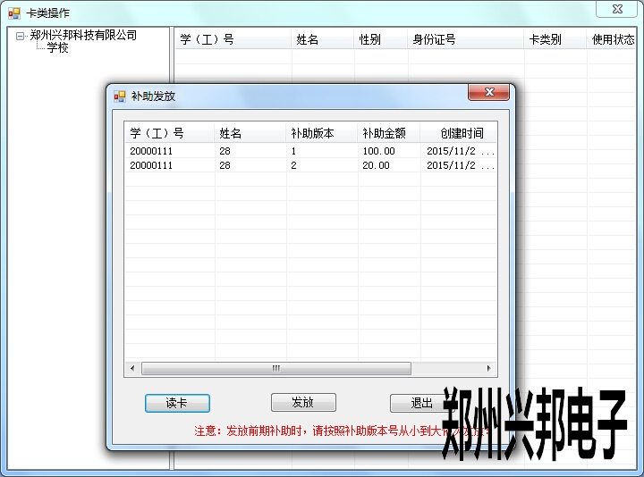 打開(kāi)互聯(lián)網(wǎng)一卡通平臺(tái),進(jìn)入制卡中心 -- 卡管理。然后鼠標(biāo)右鍵,選擇 發(fā)放前期補(bǔ)助。