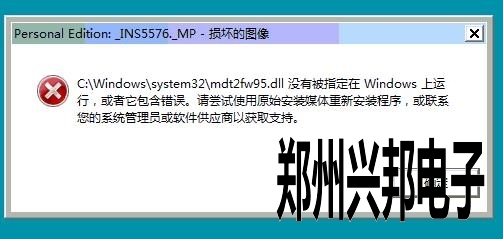 客戶使用的我們的局域網(wǎng)一卡通食堂售飯機,需要安裝軟件,需要安裝SQL Server數(shù)據(jù)庫2000,在安裝數(shù)據(jù)庫2000時提示錯誤:C:\Windows\system32\mdt2fw95.dll沒有被指定在Windows上運行,或者它包含錯誤。這是怎么回事呢?