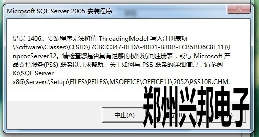 客戶使用的我們的互聯(lián)網(wǎng)一卡通食堂售飯機(jī),在安裝數(shù)據(jù)庫SQL2005時出現(xiàn)SQL server 2005 錯誤  1406. 未能將值 CLSIDThreadingModel寫入注冊表\Software\Classes\PROTOCOLS\Handler\ms-help. 怎么辦