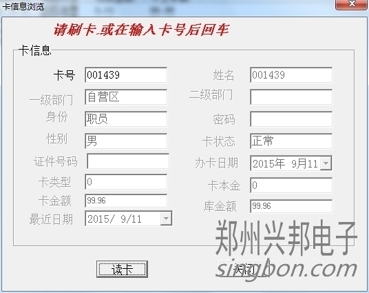 卡片就上面三種狀態(tài),另外一些操作,會(huì)造成卡狀態(tài)改變,比如:掛失的卡解掛,就變成消費(fèi)卡;掛失的卡補(bǔ)辦新卡,掛失卡就會(huì)變成新卡;消費(fèi)卡被收繳舊卡就變成新卡。新卡在消費(fèi)機(jī)上刷卡會(huì)顯示1-Err,消費(fèi)卡會(huì)顯示金額,掛失卡會(huì)顯示4-Err。