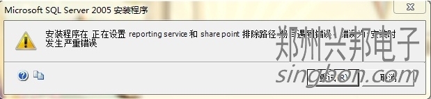 互聯(lián)網(wǎng)一卡通食堂售飯機的軟件,采集的信息都通過軟件設(shè)置存在數(shù)據(jù)庫SQL SERVER2005中,所以安裝軟件,首先要安裝數(shù)據(jù)庫SQL SERVER2005,但在安裝數(shù)據(jù)庫SQL SERVER2005時,安裝程序可能會在正在設(shè)置reporting和shre point 排除路徑 期間遇到錯誤,遇到的錯誤如圖所示: