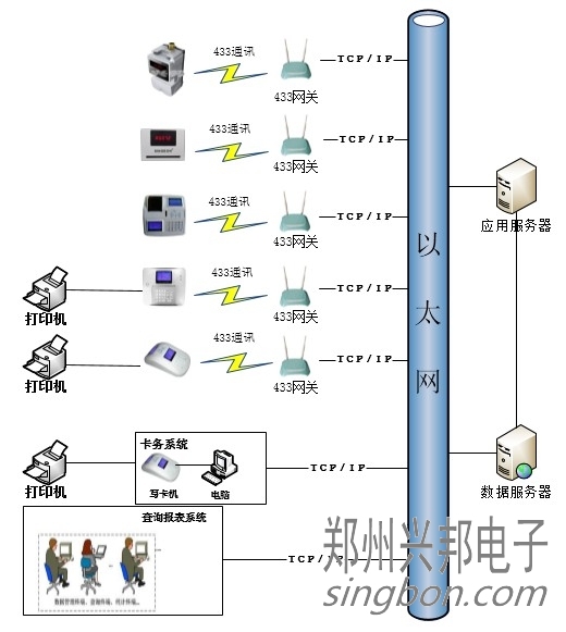 [文章內(nèi)容簡介]:BS平臺IC卡中文液晶顯示消費機(jī)433通訊網(wǎng)絡(luò)拓?fù)鋱D。