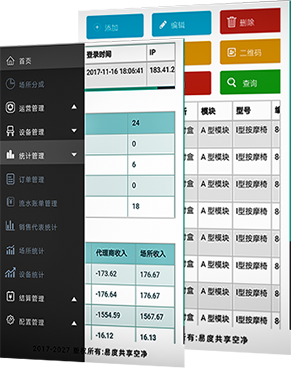 7大運營管理模塊,22項內(nèi)容管理,真正實現(xiàn)設(shè)備7X24小時/全年無休運營,在線運營,在線場所管理,財務(wù)結(jié)算報表分析,遠程配置功能等一手掌控!